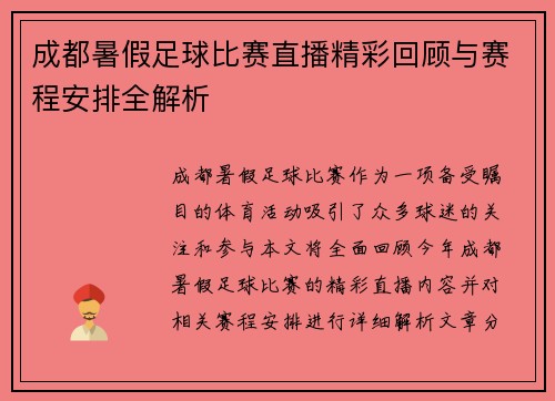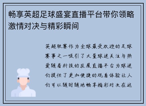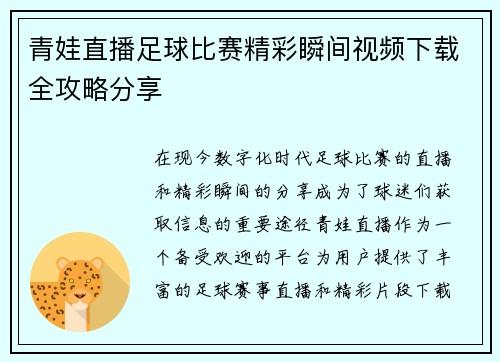 斗鱼直播作为国内知名的网络直播平台,在足球比赛的直播和回顾中展现了其独特的魅力与专业性。本文将围绕“斗鱼直播足球比赛精彩瞬间全程回顾与分析尽在这里”这一主题,从多个角度进行详细阐述。首先,我们将探讨斗鱼在足球赛事直播中的技术支持与创新,接着分析观众互动体验的重要性,再讨论平台对赛后数据分析的深度挖掘...
